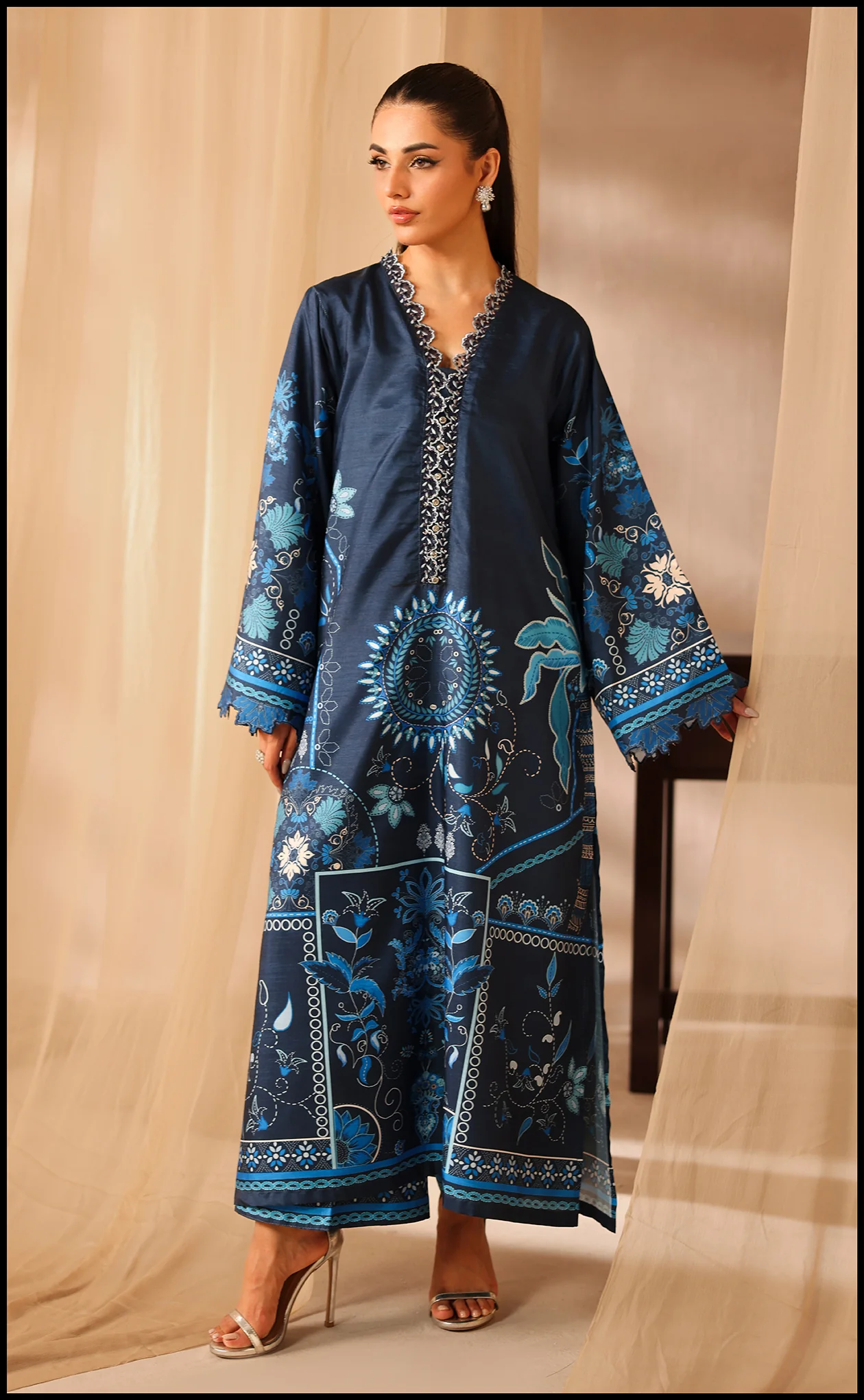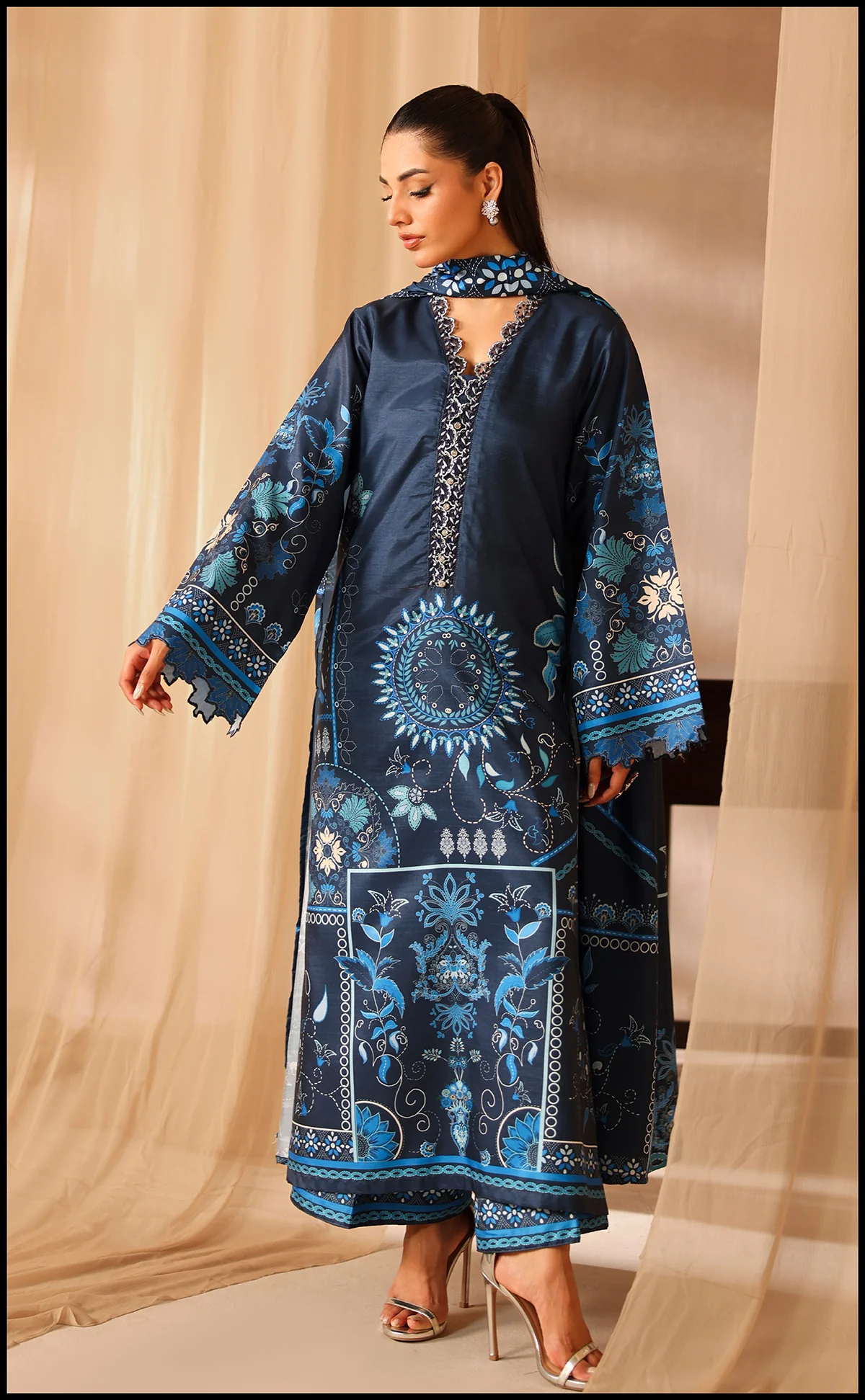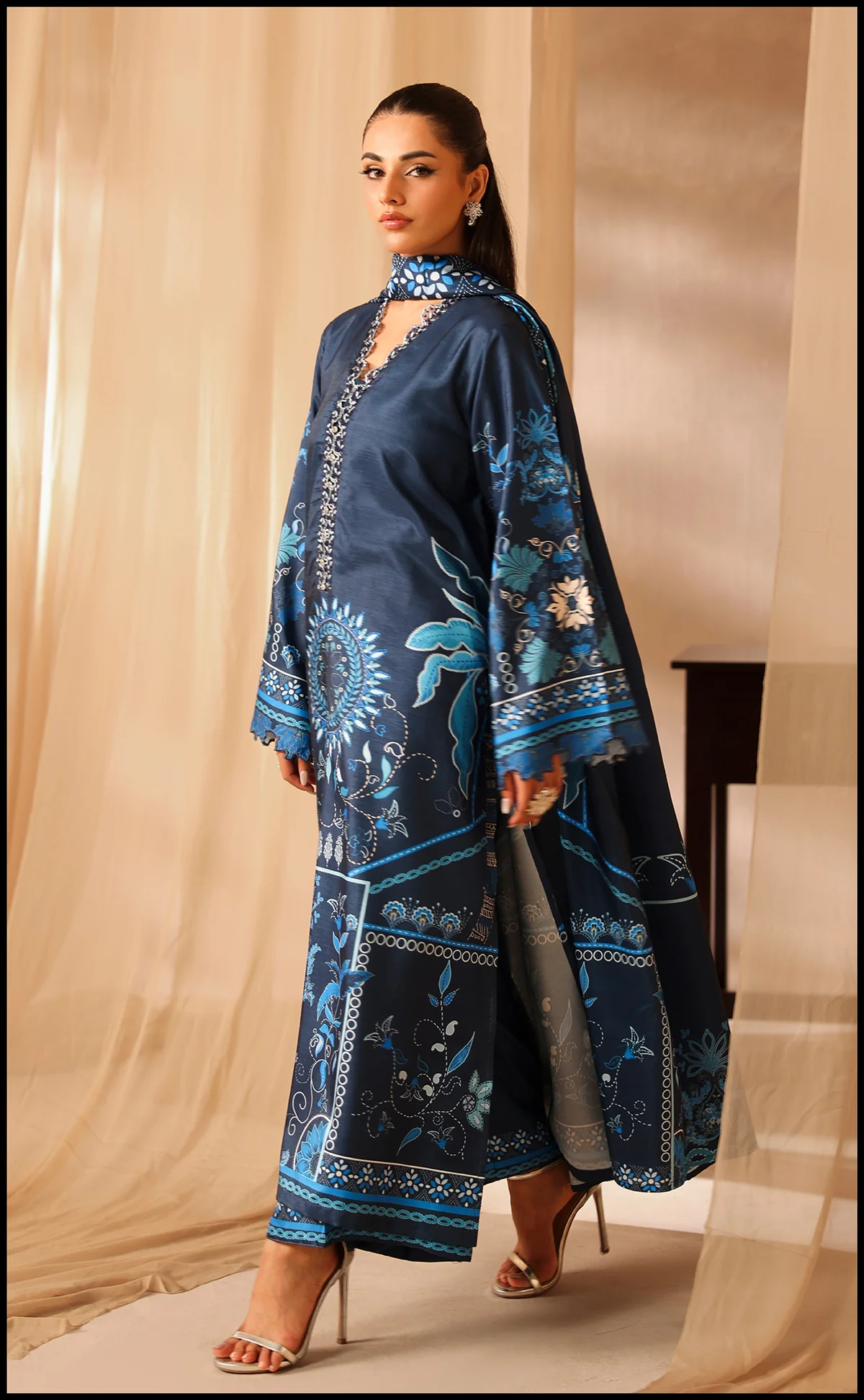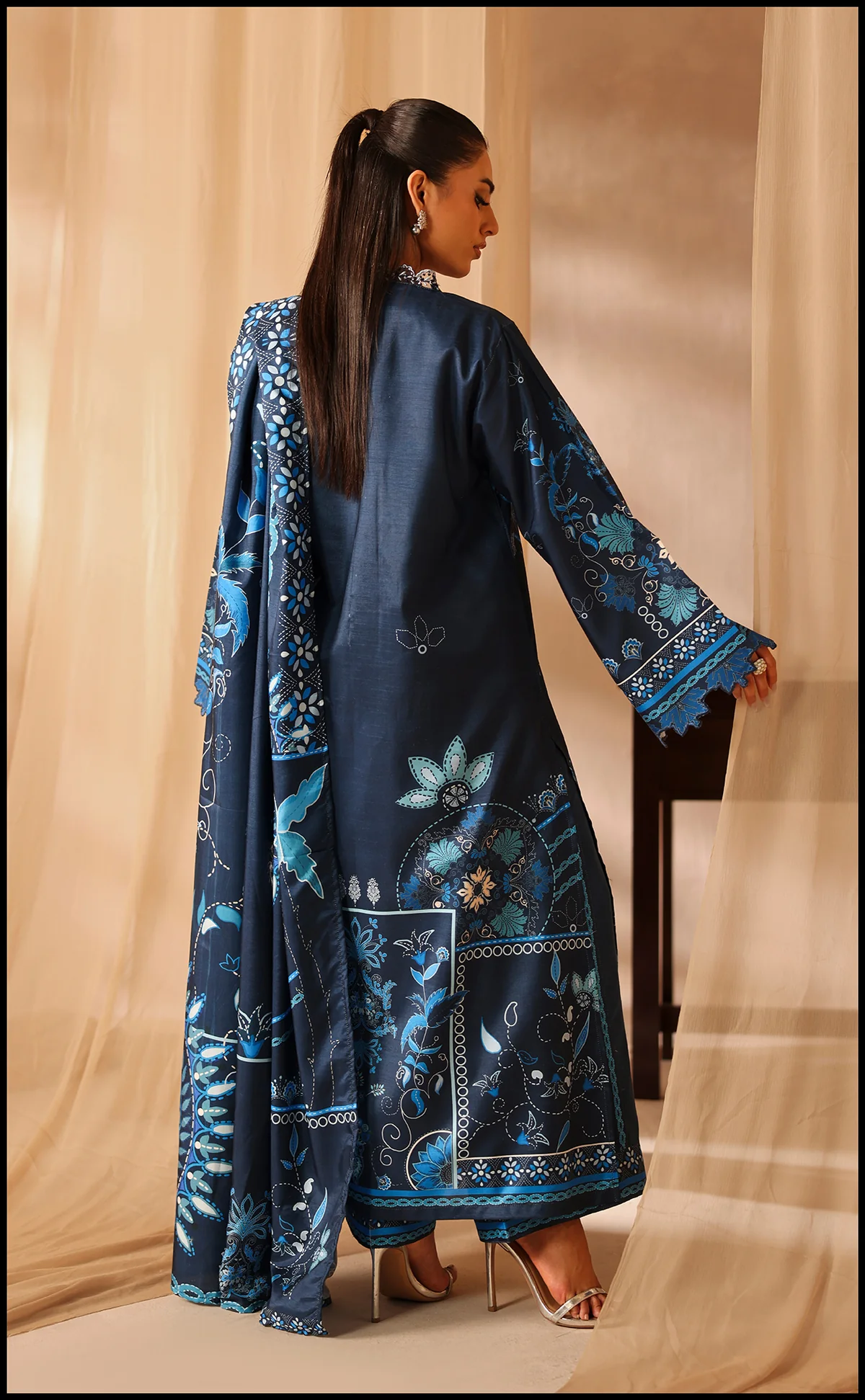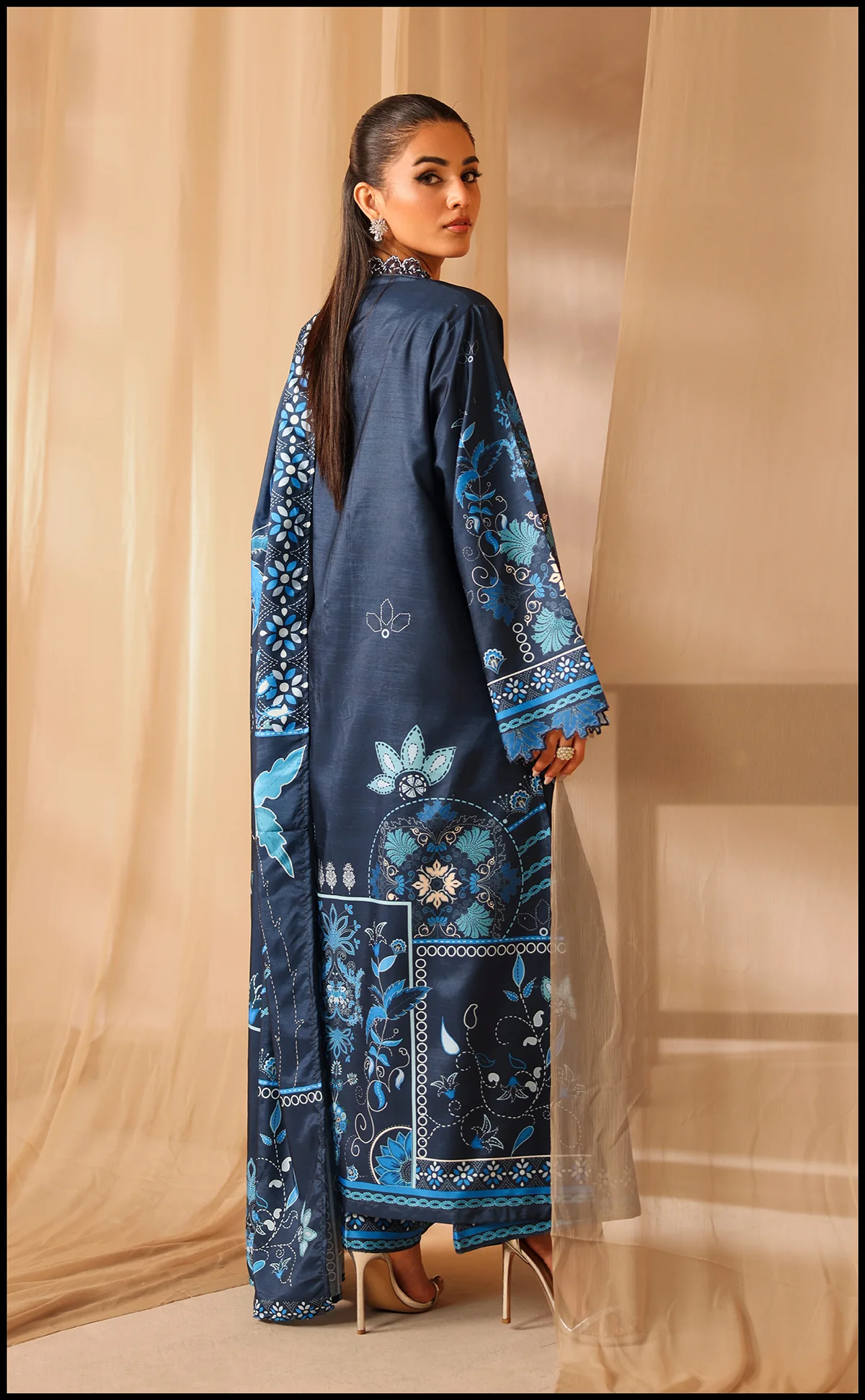 SOFT PREMIUM KHADDAR FABRIC -DIGITAL PRINTED SHAWL -Shirt length 46 -Trouser length 39 Size: Model is wearing M size.